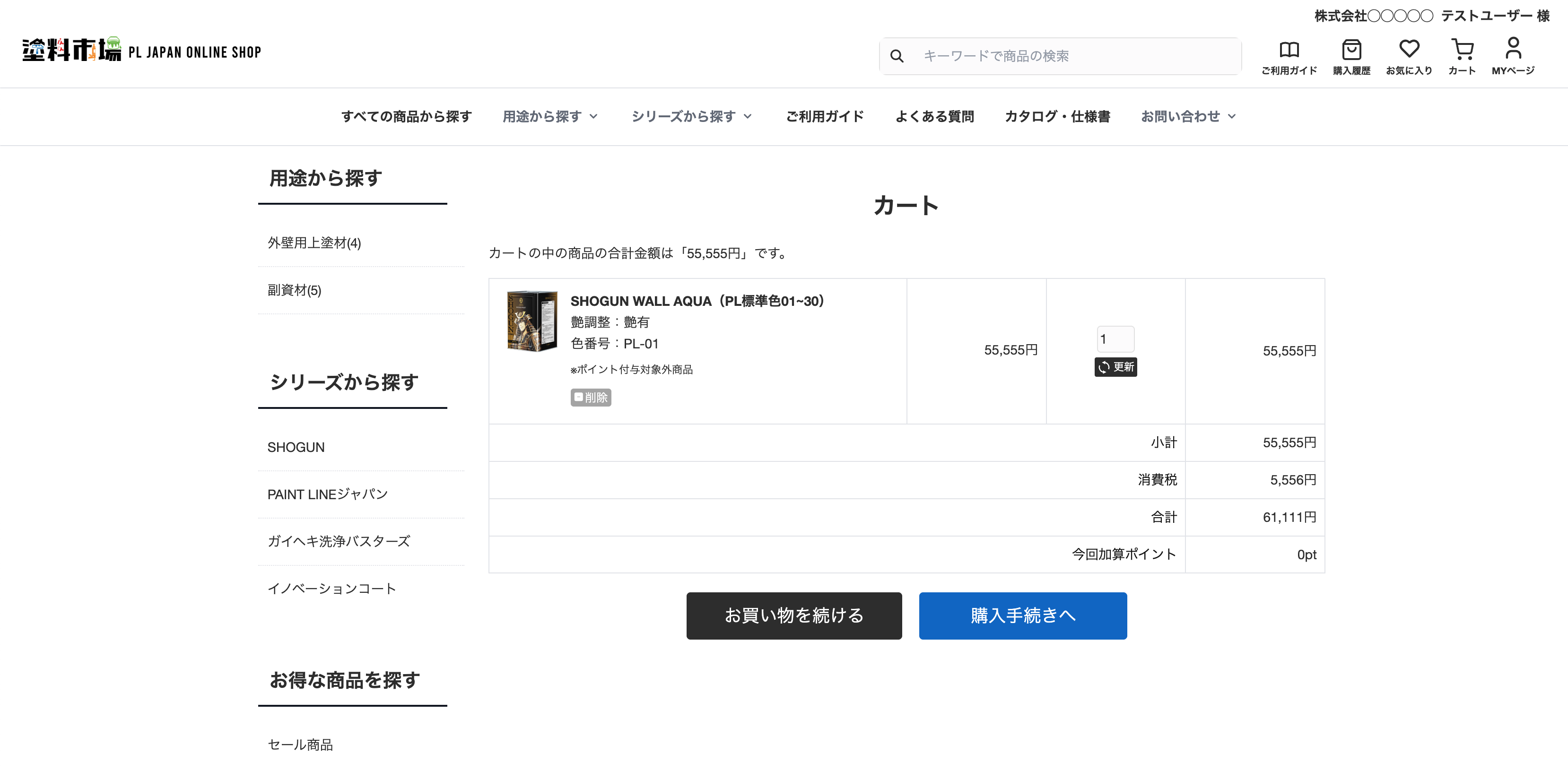 数量を入力し「カゴに入れる」ボタンをクリックします。 【現在のカゴの中】ページを確認し、「購入手続きへ」ボタンをクリックし、購入手続きへ進みます。