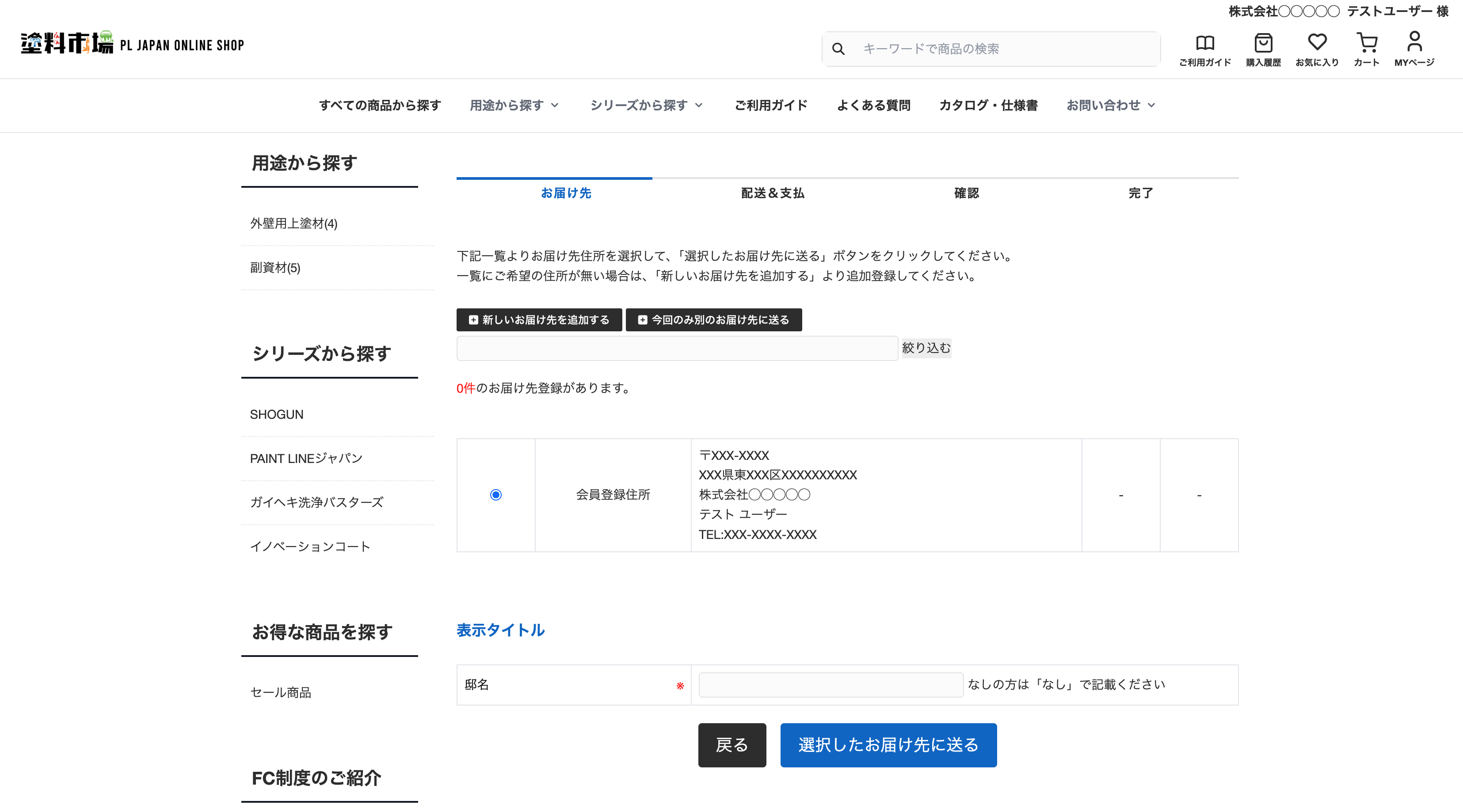 お届け先の指定登録済みのお届け先から今回ご注文の配送先を選択してください。