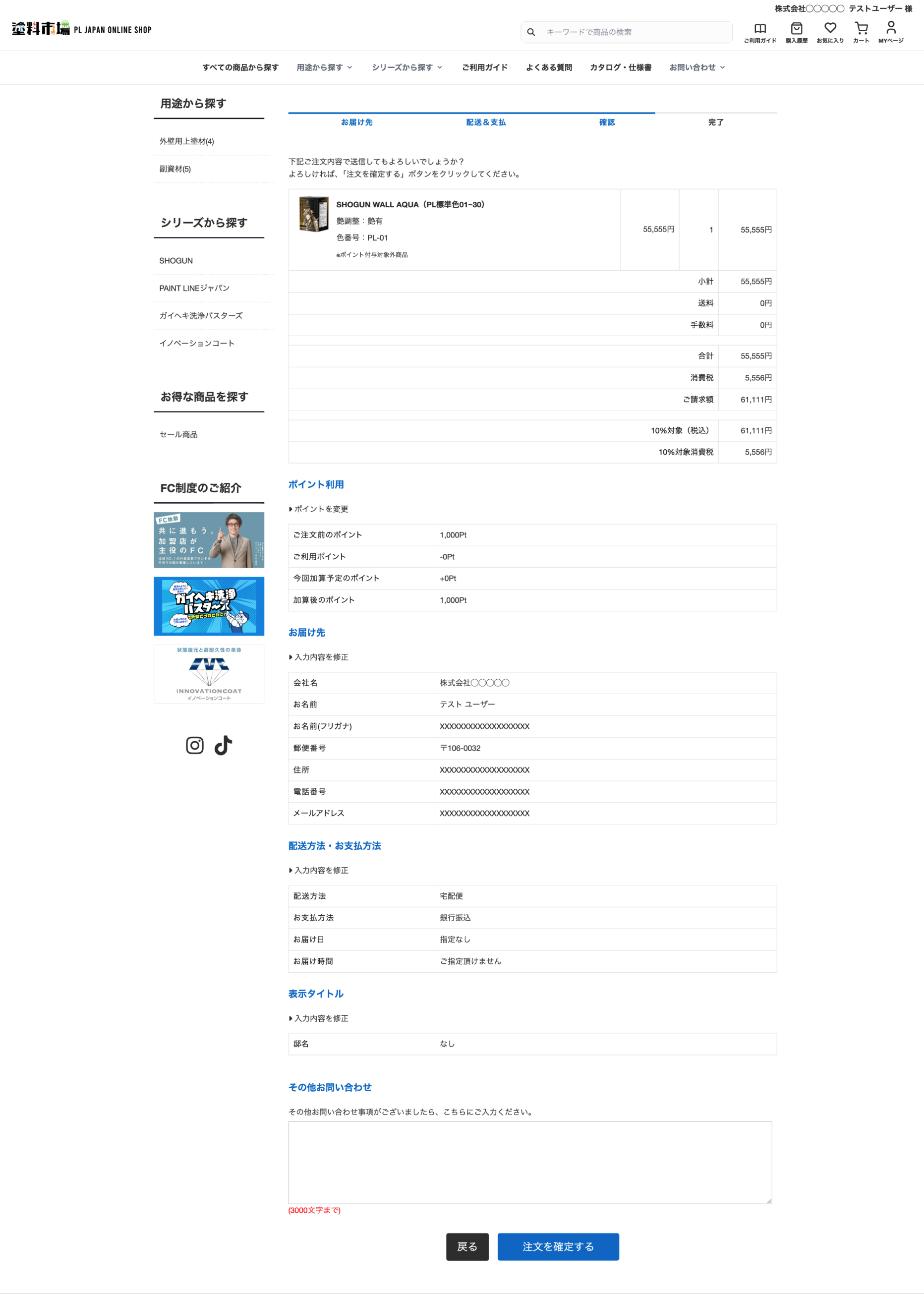 内容に間違いがないかを確認し、問題なければ「注文を確定する」ボタンで注文を確定してください。