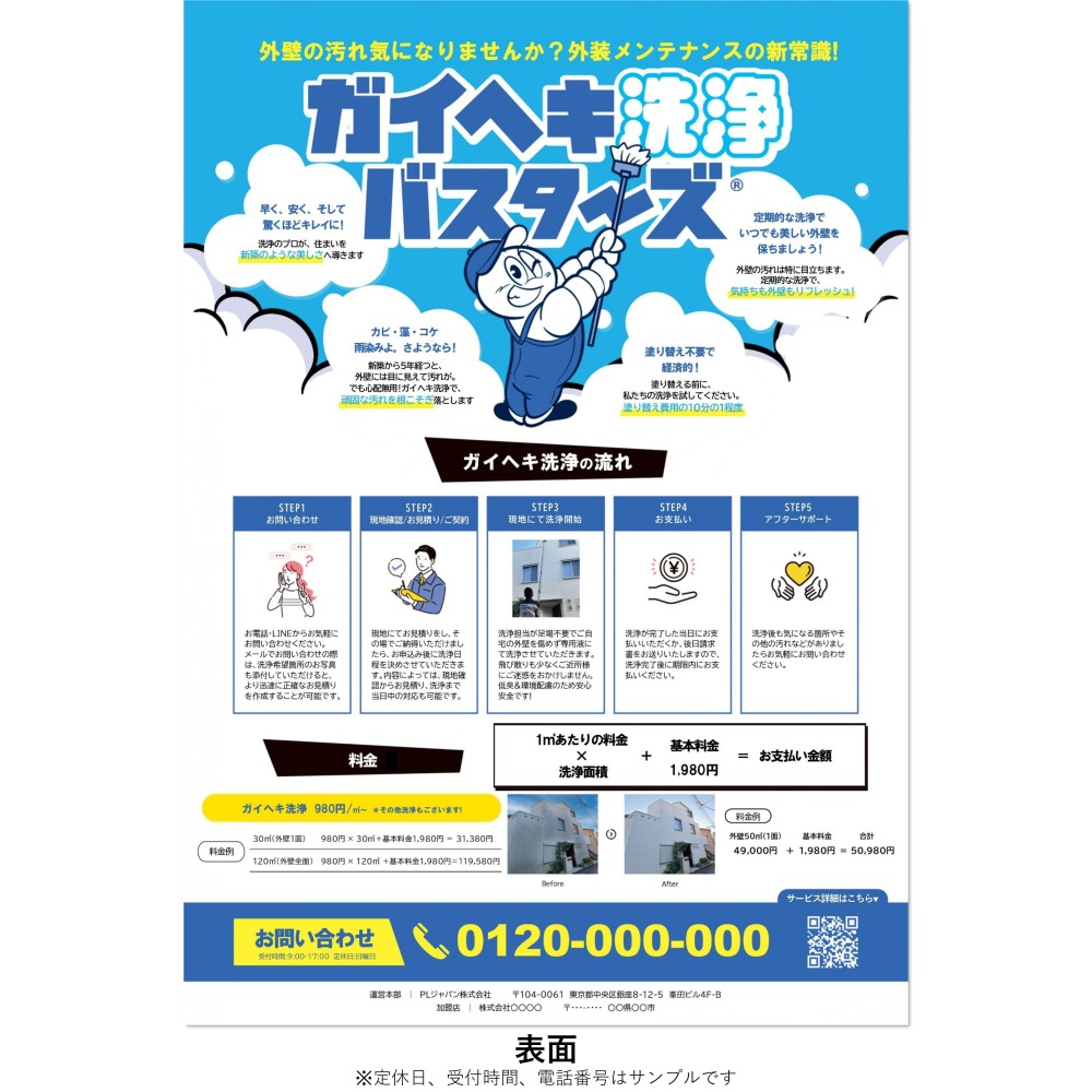 加盟キットでお届けしたチラシに記載の以下の内容に変更がある場合は、注文ページ内の備考欄に変更内容を明記してください。