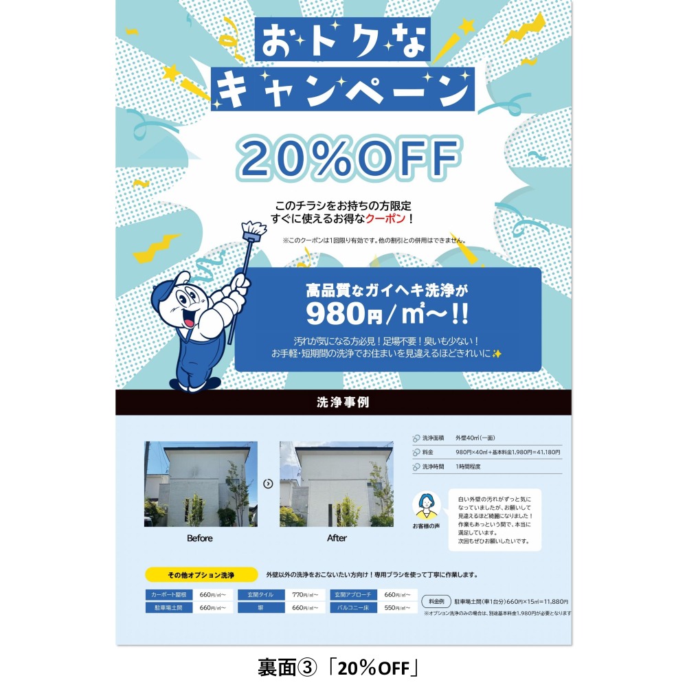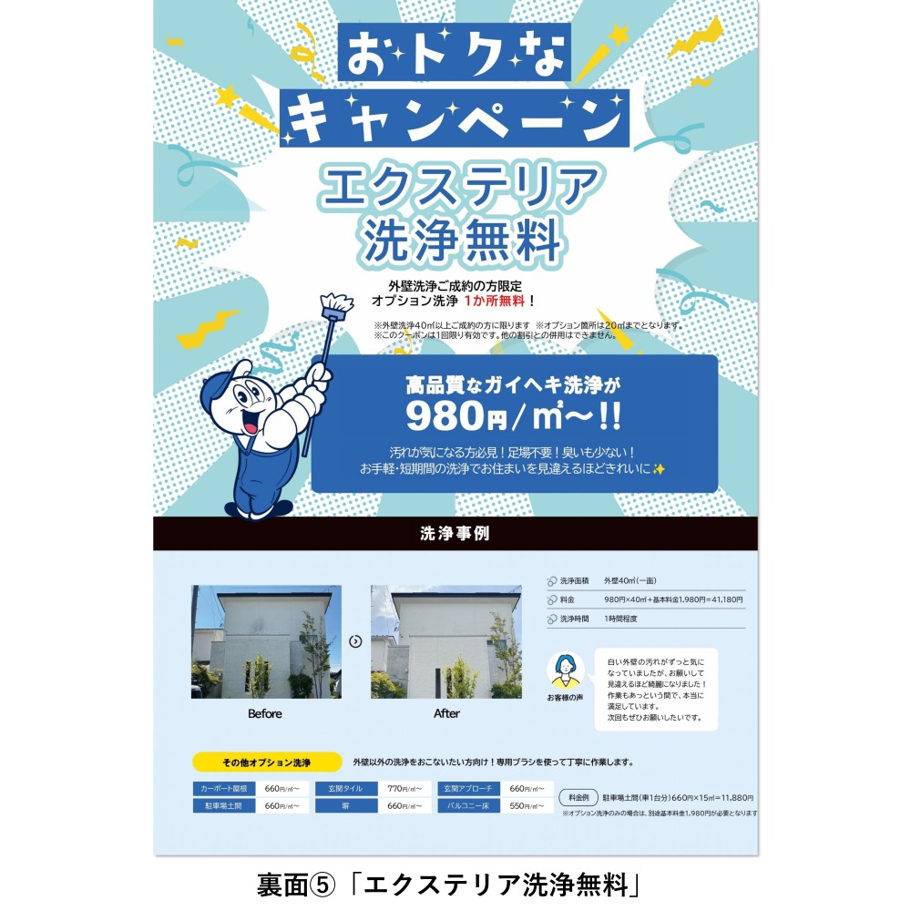 ⑤エクステリア洗浄無料